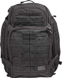 The RUSH 72 Backpacks for sale are 72-hour tactical bags made of durable and water resistant 1000D nylon. They are made by 5.11 Tactical, an industry leader in high performance and functional gear bags. The RUSH 72 Backpacks have a capacity of 3342 cu in, 55 liters. The main storage area of the RUSH 72 Backpack measures 23 by 13.5 by 8.5 inches. These backpacks feature a fleece-lined sunglass pocket and an internal hydration pocket that has hangers and toggles. The RUSH 72 backpack has dual-zippered front and main sections with molded grip pulls. These 72-hour bags have an admin organization pocket, an easily accessible shove-it pocket and numerous integrated organizational pockets. The RUSH 72 backpacks have a contoured yoke-design shoulder strap system with a grab-and-go handle. For comfort during carry, these backpacks have adjustable dual density closed-cell foam shoulder straps. They also have a cinching waist strap along with the dual compression straps. The RUSH 72 has an integrated drainage grommet and self-repairing YKK zippers. They have a generous Molle and Backup Belt System compatible web platform which means gear is always within close proximity. For a highly versatile, high performance gear pack, buy the RUSH 72 Backpack for $169.95.